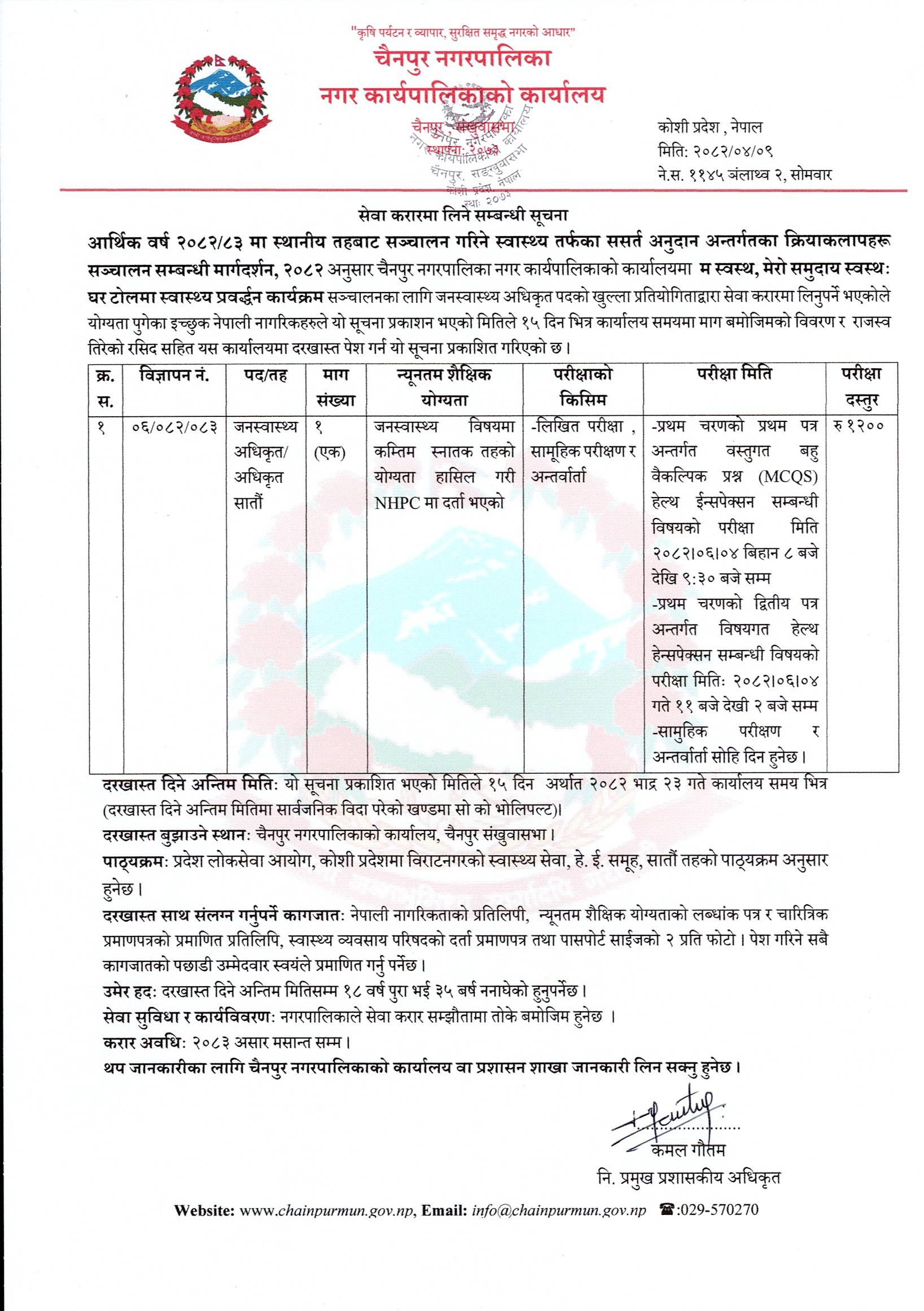 जनस्वास्थ्य अधिकृत सेवा करारमा लिने सम्बन्धी सूचना ।
