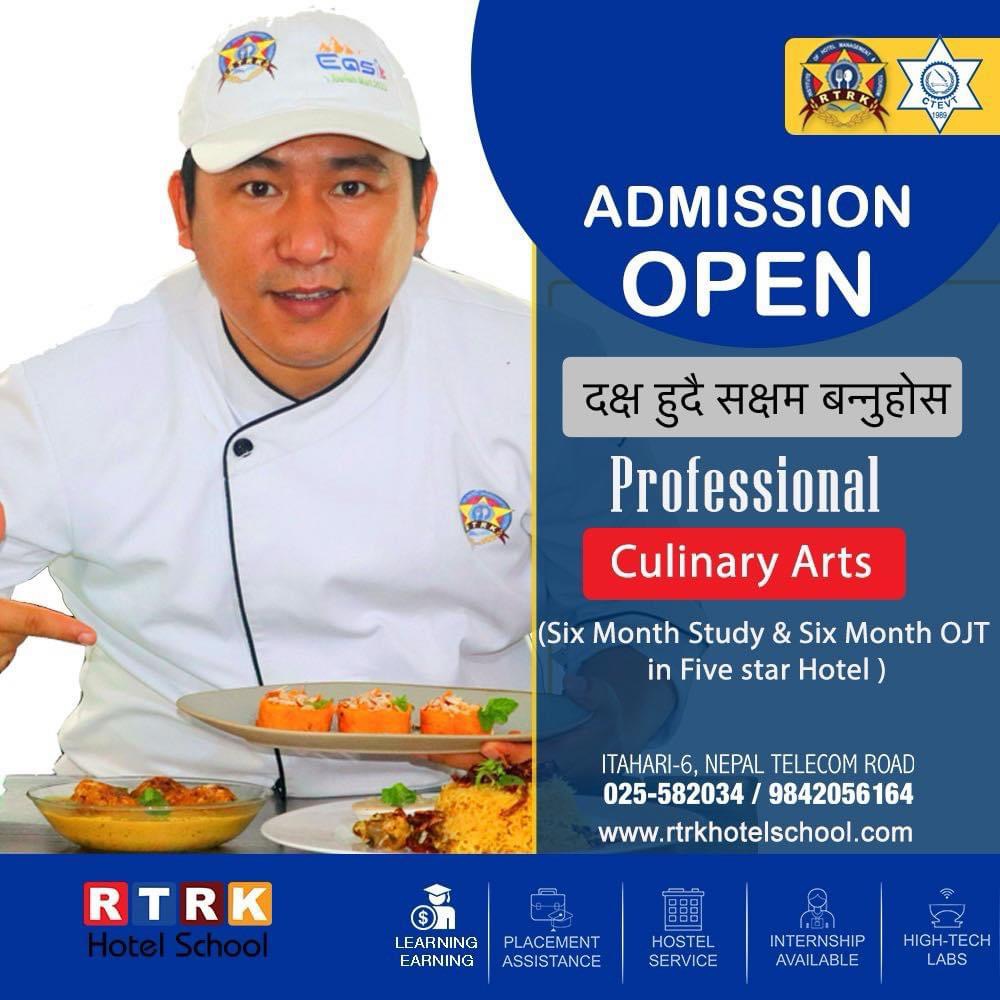 More info : RTRK Hotel School Phone: 025 582034, Mob: 9842056164 www.rtrkhotelschool.com